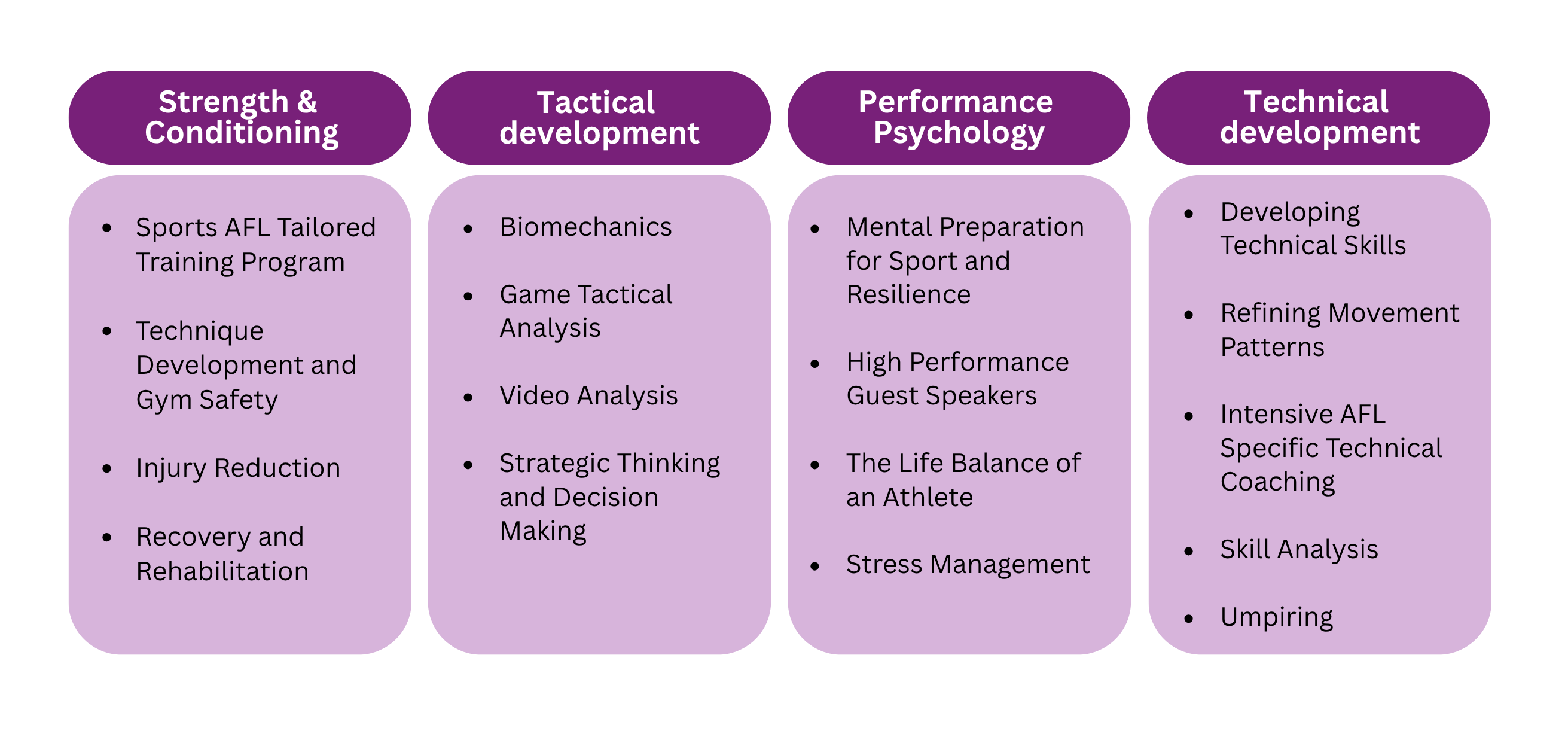 The program allows students to access specialised curriculum and high-level coaching to support their development into responsible and knowledgeable elite AFL players.