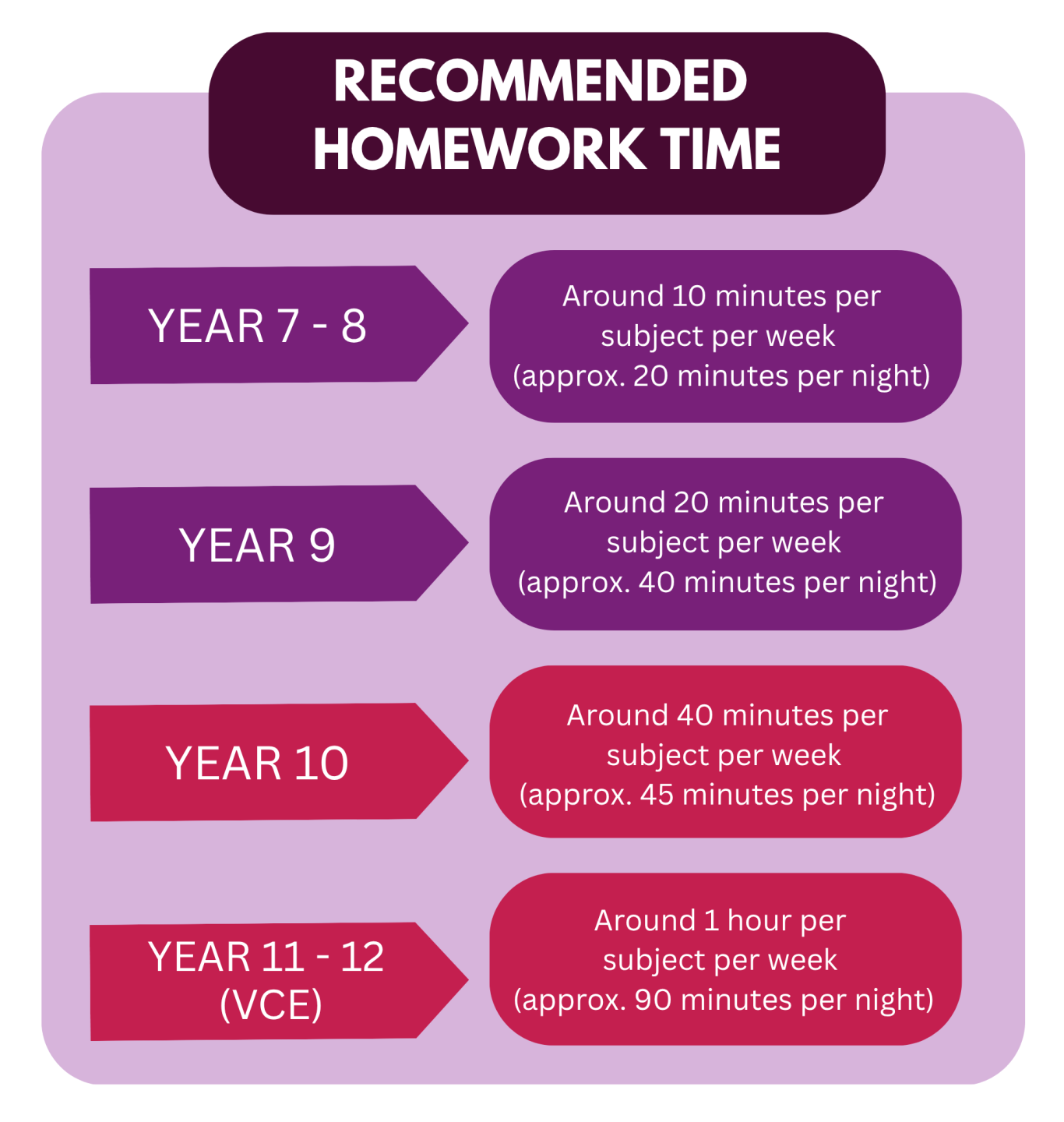 Homework at Glenroy College supports students to become organised, independent and self-managed learners. It reinforces classroom learning, builds study habits and helps students develop time-management skills.