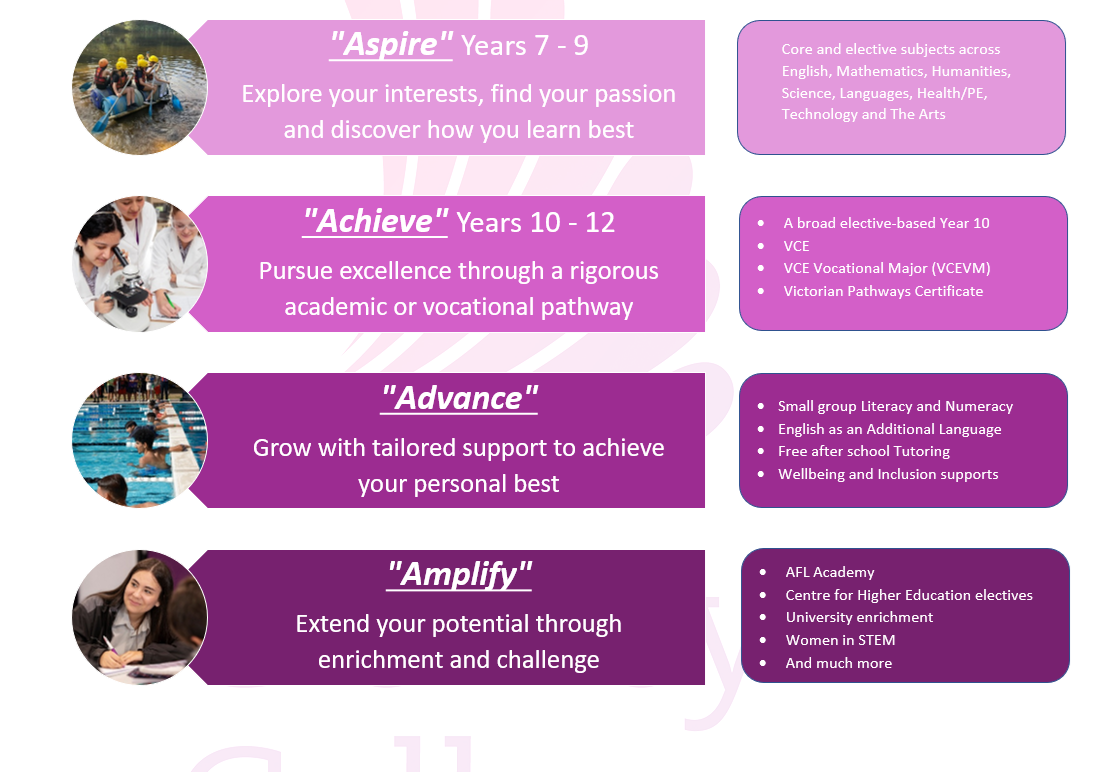 Glenroy College is an inclusive community where we share a passion for lifelong learning. Our dedication to high-quality education enables students and staff to engage in a broad curriculum with diverse and collaborative learning opportunities. We challenge and support all students to achieve personal success, understand their own wellbeing, and face the future with resilience, empathy and optimism.